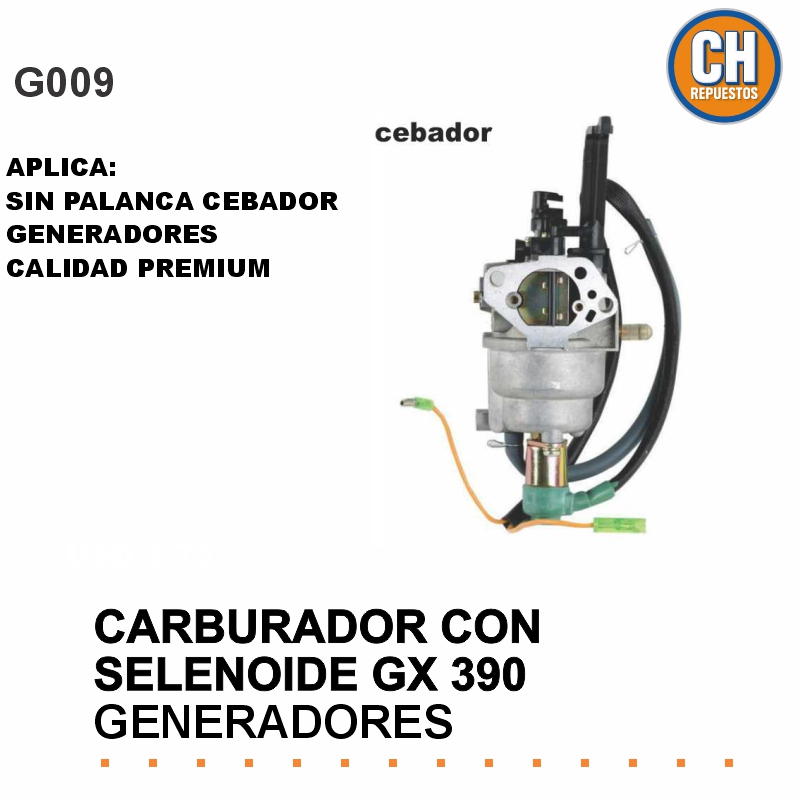CARBURADOR CON SELENOIDE GX390 CON PALANCA CEBADOR